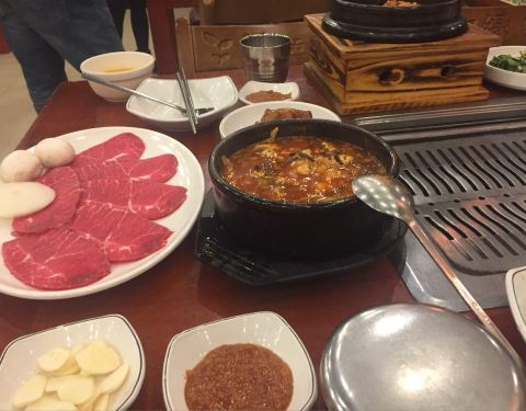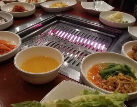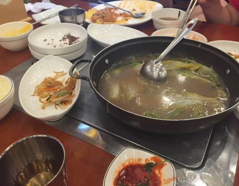 每种菜很有民族特色,蔬菜饼味道鲜美,大酱汤非常可口呦!