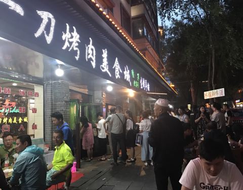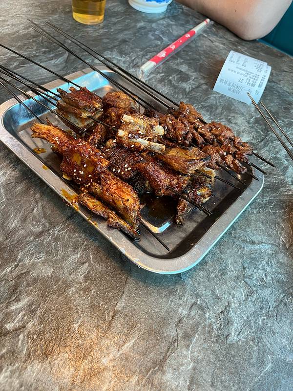 - 当地很有名的烧烤摊,羊肉串很好吃,三块钱一串,吃三穿就饱了