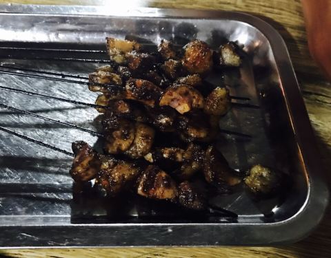 排队的人好多,上菜的速度还行,我们吃完,都已经晚上10点多了,依旧是排队点餐,味道挺好,就是这边的羊肉串,吃起来软软的,熟了却没有糊,上面没有孜然,却又芝麻。羊肠的味道不错,好吃