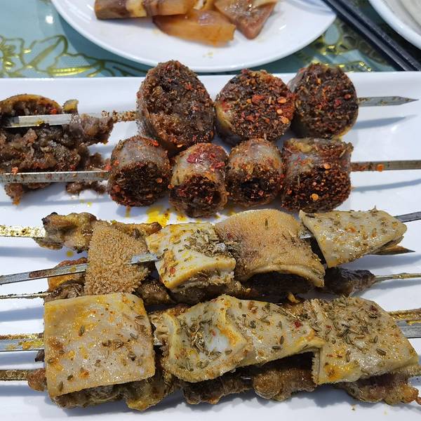 点了一斤半羊肋条 肉几乎风干 我服务员说是早上煮的 肉绝对没有坏 ( ̄~ ̄)嚼!不动 几乎没吃 一把烤羊肉 味道一般到 大街上随便一处烤羊肉 都比他家好吃 一份面片 酸不酸 麻不麻 难吃的不是一般 ...