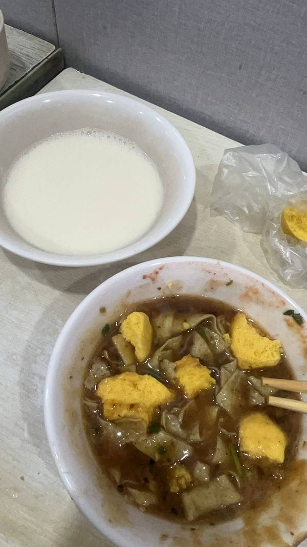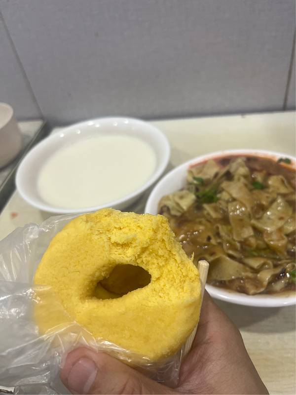 这是一家本地人才知道的嘎巴菜店,只有嘎巴菜,还有豆浆,牛肉烧饼,窝头,没有别的了,而且这里也是属于排队很久,都是附近居民,或者特意来的,嘎巴属实不错,卤子里面的各种香料长时间熬煮后味道非常的香,复合味,吃到一半,卤汁不散,牛肉烧饼是真香!