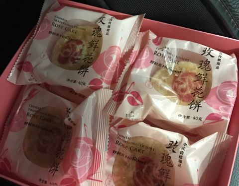 好利来,新出的玫瑰花饼味道不错,先是一块儿子爱吃回来又买一盒。