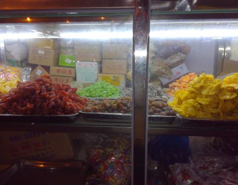 他们家的店生意很好,我们如果要去晚了,都还得排队,这种摊现在已经不常见了,三辆小推车,拼成一大长排,车上摆着各种小东西,