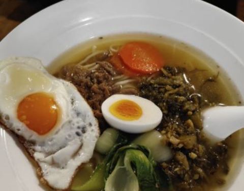 点了酱鸭腿面和牛腩面,味道一般有点淡,吃了许多小咸菜