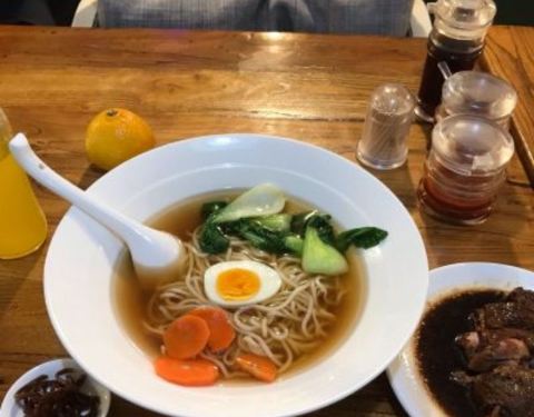 开在798里面的一家面馆,外观清清爽爽的,于是便走进来吃碗面。店里面十来张桌子,不大,比较挤。刚坐下便递上来一瓶芬达,一张菜单,还以为吃面都送饮料,后来才知道是搞错了,服务员刚要拿走,老板娘特豪爽地制...