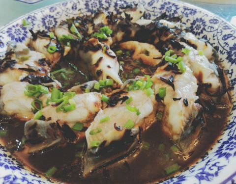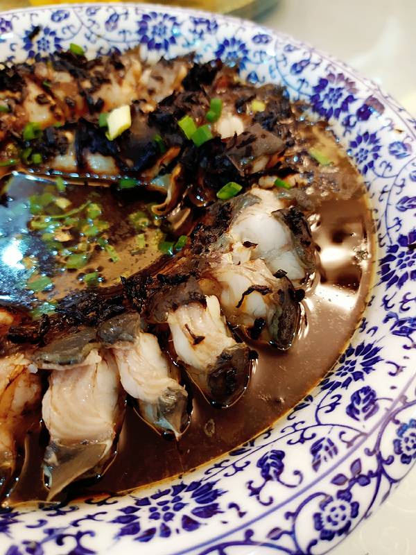 ...」★★★★ 江鳗的肉质很细嫩,鱼肉很肥美,加上杭州梅干菜特有的香味和咸鲜味,蘸着汁吃,鲜嫩好吃