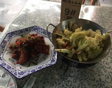 一条街两边都是茶楼,很热闹。菜味道还行,农家菜很新鲜