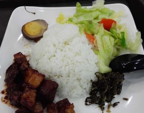 田老师红烧肉是一家快餐连锁餐厅,主营盖饭,种类虽不多,口味蛮家常的,配菜很丰富。招牌菜红烧肉味道很正宗,软烂很入味,鱼香肉丝、酸豆角等也都不错。 菜品量大,价格实惠,到了饭点前来用餐的人很多,很受欢迎。