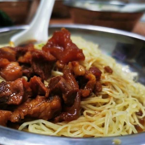 推荐:五星 午饭就在这家持续爆满排队的面店吃,旁边可没有什么大广场、景区、商圈什么的,可见味道真的不错。想要吃到都得拼桌,这都一点钟了还是排队。粽子:看基本每桌都点粽子,自然是要点一个吃吃看的。里面是红豆,但是是咸口的,每口都不粘不干,口感一流,就是肉馅比较小,但是很香。牛腩捞面 /净云吞:牛腩味特别浓,酱香软烂,软糯可口,面稍微有点坨,一整团比较干不好拌,感觉换成车仔面还会好一些。云吞有香油味,鲜香味美。