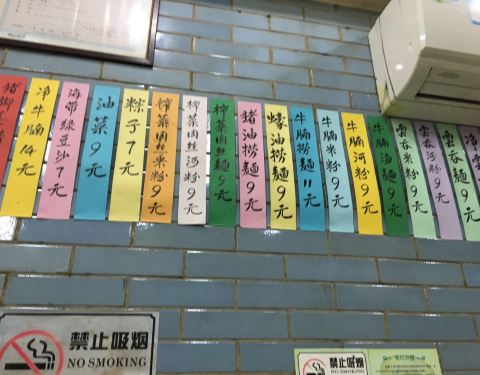 云吞不错,小小个分量足。绿豆沙甜了点,分量足,就是价格越来越贵了,现在7块一份。蚝油捞面不错。菜单现在用的彩虹色还挺漂亮。