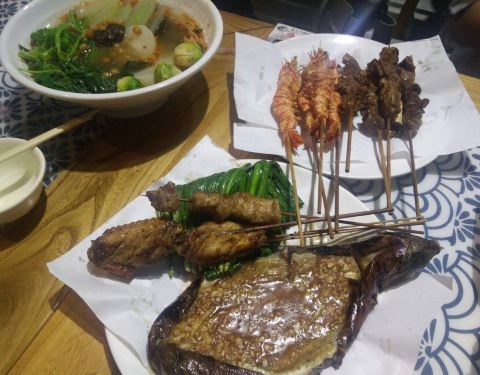来到珠海,晚上珠海本地的朋友带去吃晚饭。就系这家烧烤的对面,据说可以在烧烤档打包送过对面的大排档吃,于是就打包几样试试。这里的烧烤串价格都比较实惠,晚上都好多人帮衬,推荐烧烤牛肉粒,烤得火候和味道刚好,不会老韧。另外的烧烤都不错,下次来还可以再吃。