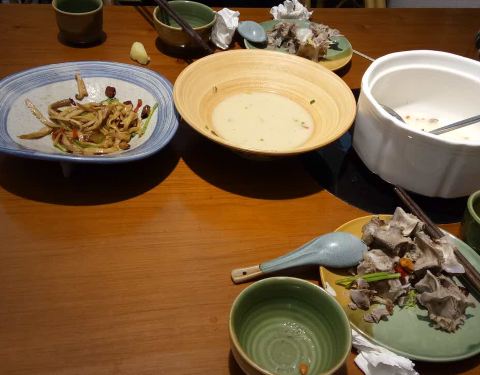 两人点清炖羊蝎子(不错哦),羊杂面,杏鲍菇炒茼蒿杆(有点咸),羊肉串(一般般啦)。服务员态度非常好,干净整洁,推荐亲朋聚餐。