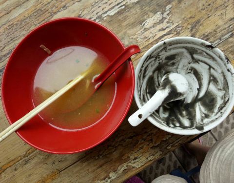 环境不怎么样的一家小店,有主食有甜品,都吃了。 我第一次经过是冲着芝麻糊去的,甜品里面红豆沙、双皮奶和芝麻糊我是不能割舍的。 很有香港和澳门街边小店的感觉,一样的广东话,很亲切熟悉。 云吞...