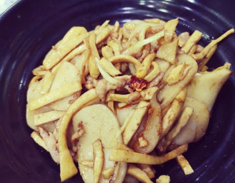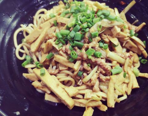 [环境]夜色深沉,披星戴月,一身疲惫,饥肠辘辘,新华路135号,月新依旧灯火通明,老店就仿佛一个老奶奶,永远守护着忙碌的夜归人,一口热菜,一碗热饭,此刻都显得弥足珍贵。 月新店面宽敞,被分隔成三间,桌椅简单摆放,细节处干净清爽,市井小馆也是收拾得井井有条。 邻桌几个老杭州人,点着家常便饭,喝酒畅谈,十分惬意。杭州话乡里乡亲,一派老杭州的生活画卷,淋漓尽致的真实展现。 [服务]老板娘是热情客气的的,店面比较忙碌,谈不上服务,除了上菜,其余基本自助,性价比是极高的。 |肉丝拌面^香干、韭芽、香葱、面条细长柔韧,飘散着香味,清淡不油腻,最家常的口味,最贴合我的肠胃,杭州的老底子拌面,应当是老师傅的厨艺。恰如其分的口味,多一分油腻,少一分寡淡。 月新肉丝拌面,家常好味道。