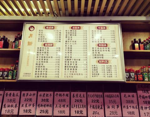 月新,新华路135号。 又加了班,下了公交。大雨滂沱,瑟瑟发抖。 小吃面店,早早关门。新华路也,渐渐睡去。 我的晚饭,还没着落。夜归人儿,或许失落。 幸好遇见月新,是雨天里的幸运。 ”月新”闪亮的黄色字眼在雨夜里,仿佛是一种神奇的召唤。 “晚餐白酒,免费畅饮”,市井的豪迈,彪悍的人生。 [薄荷]环境: 老房子的空间被隔成三间,透明的落地窗,环境简洁明亮,设施略微陈旧。油腻是避免不了的,就像脸上的皱纹,随着飞逝时光,自然而然而生。 月新,也是新华路小有名气的老字号。 不送外卖,只做堂食,她有她的脾气。 [服务铃]服务: 点小吃在收银台直接买单。或者点菜勾选纸质菜单,拿给老板娘计算买单,指定位子坐下,服务员会端菜上来。 大嗓门与锅碗瓢盆声起飞,市井百姓谈笑噶是噶非。在老城区的老街上、老店里,这一切稀疏平常。 「肉丝拌川」香干、韭芽、肉丝,与碱面拌在一起,发出扑鼻的香,面条柔韧细长,杭州人骨子里的回味悠长。 月新,雨天里的幸运。 温暖,是身心的给予。