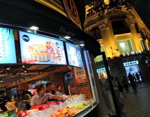中央大街反正也不愁卖不掉东西,里面的东西都是挺贵的,他们家的面包价格不便宜,可能是由于地段太好了,店里面很拥挤,基本上两个人同时走就不行了