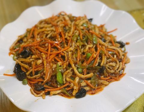 【九龙阁】 微博@洛洛食纪行 三十多年的老年,有很多的特色中餐和韩餐。 前面是开放厨房的简餐,后边餐区是溜炒。 鱼香肉丝和锅包肉做的都很到位,菜码也很大,鱼香肉丝之前一直听说不错,感觉有青豆就是我理想中鱼香肉丝的味道。 韩式拌饭和紫菜包饭也很经济实惠,还有火鸡面。也有自取的海带汤… 中央大街附近隐匿的老味道…