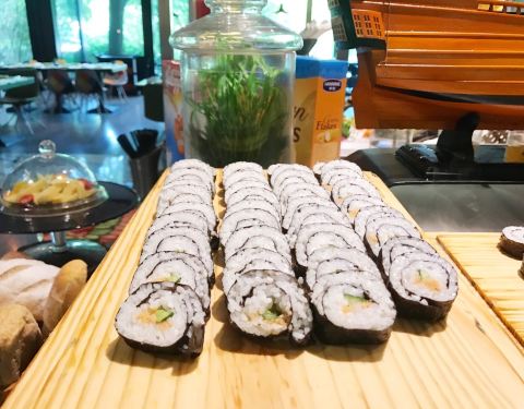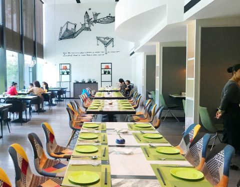 位于富邦大酒店的首层,从大堂正门直进里面便是。不同于传统的豪华型酒店,这里的装修比较轻快,墙壁上的格子摆放着各种可爱的装饰品以及图书,餐厅的环境与卫生也很好。我们享用的是入住包含的自助早餐,品种丰...