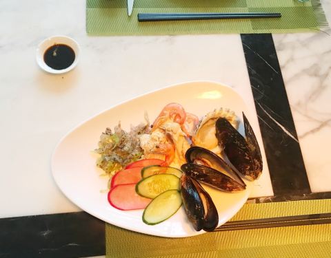 Pad点菜系统不方便,无法写明自己想要的烧法。点了象鼻蚌熬粥,结果先上刺身,退回去又回来一个羹,还好服务员态度不错,就算了。上菜速度慢,菜品也不丰富,味道一般。感觉不是专门吃饭的餐馆,就是和酒店配套不得不搞的餐厅,如果不住酒店特特意来吃饭就不推荐了。