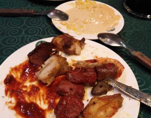 各类食品全面,主打南美烤肉,都是先烤先上,保证了温度与口感。个人比较喜欢蜜汁没肉。 西冷牛排三分熟,暂不适应,煎牛排货真价实,觉不是拼接肉,良心店家。品质上还是放心的。 另外凉菜,热菜类齐全,海鲜需...各类食品全面,主打南美烤肉,都是先烤先上,保证了温度与口感。个人比较喜欢蜜汁没肉。 西冷牛排三分熟,暂不适应,煎牛排货真价实,觉不是拼接肉,良心店家。品质上还是放心的。 另外凉菜,热菜类齐全,海鲜需要现煮。 性价比很高的一家烤肉