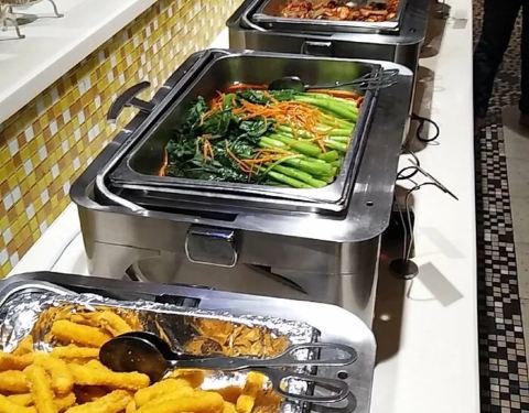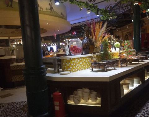 菜品非常多,口味也特别棒还有各种大串烤肉羊腿.牛舌等.……还有各种海鲜小炒,精美的凉菜,点心也是花样百出,新鲜的水果现场炸的果汁更是美味可口,环境好服务也很周到而且价位也很合理