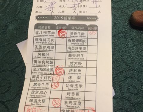 各类食品全面,主打南美烤肉,都是先烤先上,保证了温度与口感。个人比较喜欢蜜汁没肉。 西冷牛排三分熟,暂不适应,煎牛排货真价实,觉不是拼接肉,良心店家。品质上还是放心的。 另外凉菜,热菜类齐全,海鲜需要现煮。 性价比很高的一家烤肉