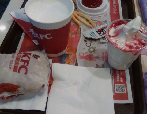 今天工作得有点累,来到肯德基之后,环境好舒服,适合吃午饭,点了个工作餐,靓女服务员都好好的,汉堡都是我喜欢的鸡蛋花,好好味道,薯条都很好吃,给了赞