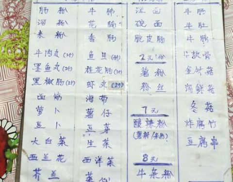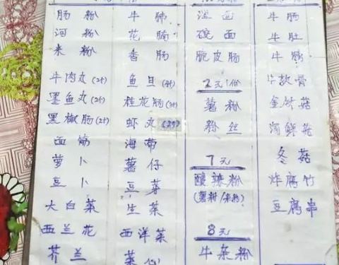 这间店开了很多年,所以大多是本地食客。看了下菜单,很便宜,菜品大致在1-2元一份,有荤有素,自由搭配。点了牛腩、牛软骨、牛肚、萝卜、生菜等几样,一碗也才9元。如果是想做主食吃的,那么再加点一份粉丝什么...