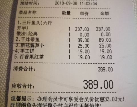 中午到此吃饭,很多次了,重新装修过,餐具和菜谱很华丽。味道一般,性价比不高。一盘炸带鱼,九块,要价89元。一份手工饼19元。鱼头要的是半份3斤的,79一斤,东北鱼。