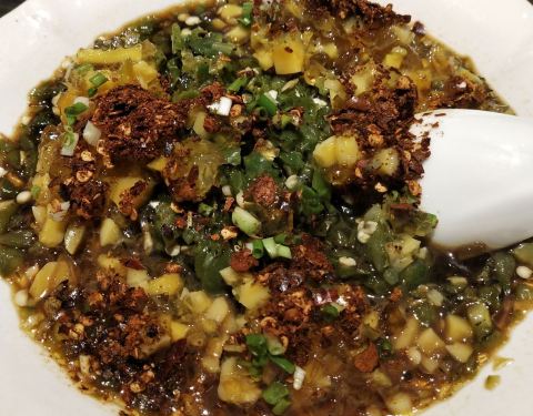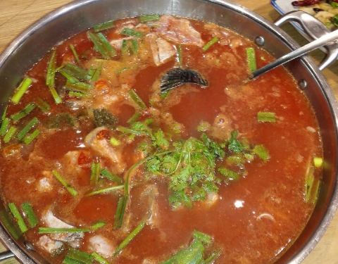 这家店很大,有2个门,一边是侗家老坛酸菜鱼,一边是侗家菜。 按照DP网的指引到了侗家菜,然后点了酸汤鱼,要去隔壁称鱼[笑哭]。 酸汤鱼,柠檬草(香茅)的味道很浓郁,赶脚点了泰式冬阴功汤!要了江团,感觉像鲶鱼。烫火锅里,最爱的是那个啥二粑,就是年糕片么,赞[强]!金针菇也不错。和以前在上海吃贵州菜酸汤鱼不一样。 丝娃娃,总算是一睹芳容,小春卷皮,卷上蔬菜加猪油渣,蘸酱汁吃。很清爽,酱汁有两种,辣和不辣,都有柠檬草的味道,而且都有折耳根(鱼腥草)和酥黄豆。 小米渣,和以前在上海吃的也略有不同,一样粘粘的,一样甜甜的,只是里面加了腊肉末,有了香味。 感觉又点多了!