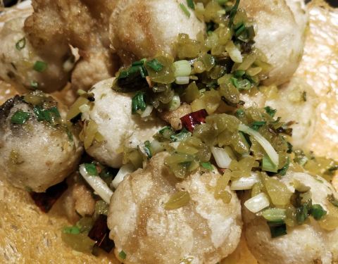 点了三道菜,不知道是口味问题还是什么,鱼做得很咸,蛋饺又很淡,味道一般,豆腐丸子还可以,不过趁热吃味道佳