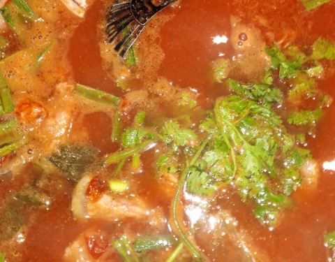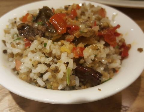 环境很有民族风味,对于吃少数民族特色酸汤鱼来说,在这样的环境下,自然胃口大开。腌鱼、腌肉、侗家三宝都是侗家的风味菜,酸中伴辣、咸中带甜,有的人不一定吃得惯。社饭倒是比较好吃,略油,荞麦炒饭也很不错的。