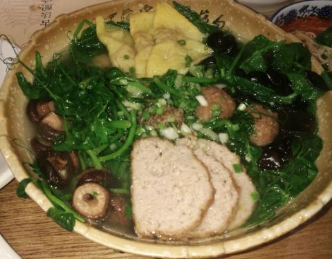 ...,不知道是口味问题还是什么,鱼做得很咸,蛋饺又很淡,味道一般,豆腐丸子还可以,不过趁热吃味道佳