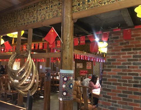 - 餐厅的装修是苗族民族特色的。特色菜是贵州典型的酸汤鱼,丝娃娃,豆腐圆子等等。服务员的态度一般