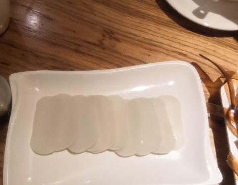 烫火锅里,最爱的是那个啥二粑,就是年糕片么,赞[强]!金针菇也不错。要了江团,感觉像鲶鱼