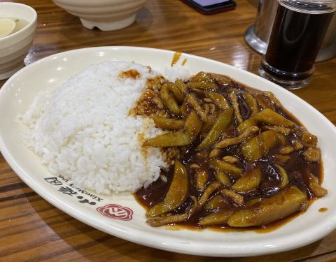 - ...都涨价了,好久不吃盖浇饭突然心血来潮的想吃,一份鱼香茄子很入味,特别下饭,辣肉面也很劲道~~~