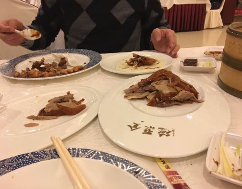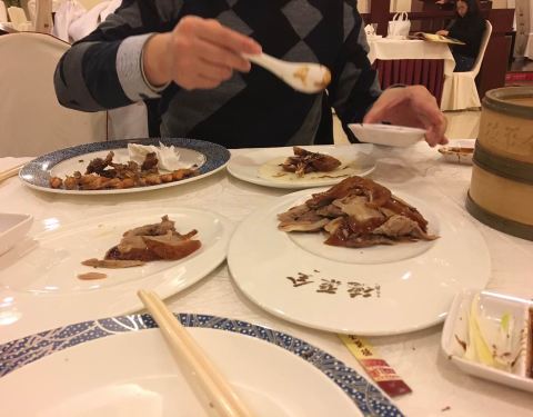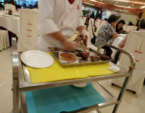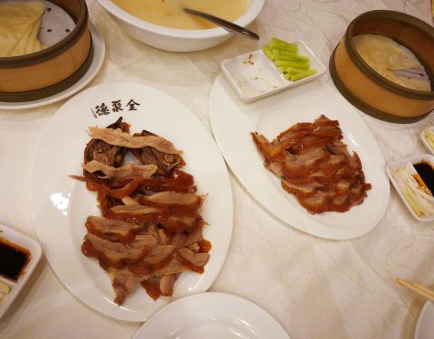 - ...单说这北京烤鸭,这全聚德,感觉和北京的已经不是一个味儿了,尤其饼和酱,明显没有北京店里的口感好