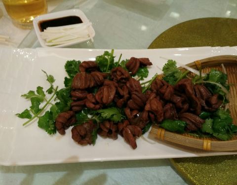 朋友聚会吃全聚德,价格果然是贵!芥末鸭掌不好吃。鸭心超好吃,78一份。还好很好吃。很大很脆,反而是烤鸭,没有想象中的那么好吃。