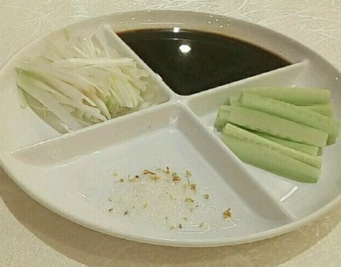 ...,点了一只烤鸭又推荐两个特色,还做了椒盐鸭架,不过烤鸭吃多了有点腻,配上配料还可以,下次还会来