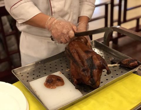 - 想了快两个月的北京烤鸭,终于有机会来吃了!就在家附近,浦东,世纪大道附近的紫金酒店三楼,好棒