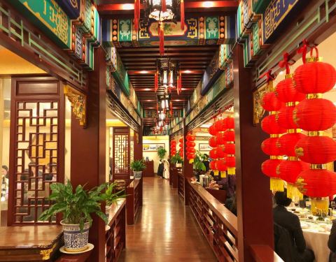 - 我们过年过节会选择这家店来品尝烤鸭的。九六广场的这家全聚德店面气派,布置成老北京的氛围