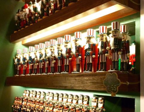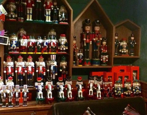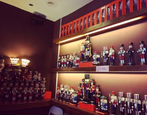 ...厅1号店里的造型,店里有很多大小不一的胡桃夹子,照相很好看,咖啡通常15元一杯,灯光气氛都很好