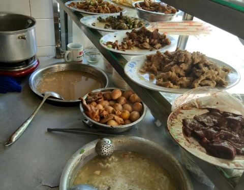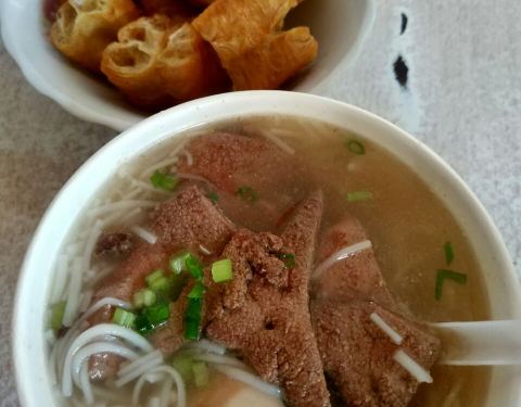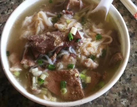 至少三十年以上的小吃店,厦门能开二十年以上,都算得上老字号了。主营面线糊,以至于花生汤都很少有人点单,沦落于保温瓶中,偶尔有人点的时候才倒出来放在电磁炉上加热。厦门的面线糊做法,唯一与大泉州地区面线糊沾边的是喷了少许高粱酒,汤头中有微微酒香。配料首选大肠,他家的大肠有两种,一只是烫熟的,另外一种是卤过的,客人可以根据喜好各取所需。