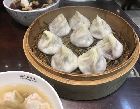 这里的虾仁小馄饨也很好吃,主要是汤鲜,加了紫菜虾米豆干蛋皮等。无锡老字号的小笼,久负盛名