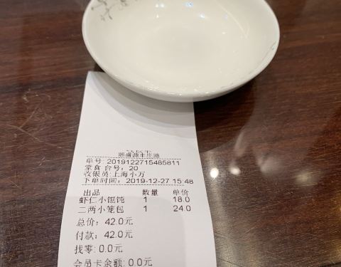 上海唯一一家直营店,别无分店~ 每天早上6点半开始营业,到下午7点就关门了,所以想吃一定要乘早~PS:夏天是延后到7点半关门~ 7点不到到店的时候,小馄饨之类的已经没有了,选了小笼和开洋馄饨~ 小笼一客4个,两个人就要了8个~小笼是凭借小票在门口处自取的,如果来的不凑巧可能需要排队等了~小笼每个都是皮薄馅足~感觉馅料都抵上肉包子的馅料了~汤汁甜而不腻~相当好次了~ 开洋馄饨还是满鲜美的,鲜美的猪肉和开洋的组合,别有一番风味~馄饨的话拿着号码牌在座位等就可以啦~ 整体而言非常适合小吃一顿的地方~很正宗的苏式汤包~