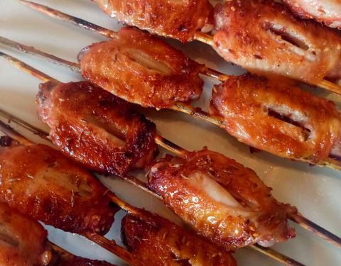 - ...,10个羊肉串,15个烤鸡趐,30个咸甜火烧,共计430元,味道好极了,不在此处吃,须在总店买