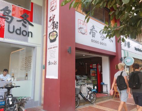 ∠( ᐛ 」∠)_ 来自阿5朋友的推荐,离沙坡尾、猫街蛮近的,据说也是家老店了,换了位置,门面装修不错,上下两层。 「砂锅」,第一次点,有点懵,先选配菜,至少点3样,冰柜里菜品挺丰富的,蔬菜、海鲜、火锅料、肉类等,尝试搭配了酸笋,瘦肉、花蛤。接下来选面,手工面、米粉、面线等,第一次来个安全牌,泡面。3样15元,扫码付款后,老板会给个号码牌。 坐在一楼,就在点餐区边上,不时听到“酸笋”二字,[悠闲]嗯~,同道中人呀。 砂锅的精彩都在汤里,原谅我词乏,就是好喝,酸笋不错,花蛤一般,瘦肉是个坑,勿入,又硬又柴。对于女生,这样一份还蛮饱的。喜欢吃辣的,可以搭配他家的辣椒,还蛮香的。也可以点个「五香条」佐餐下,不是刚炸出来的,味道也还可以。