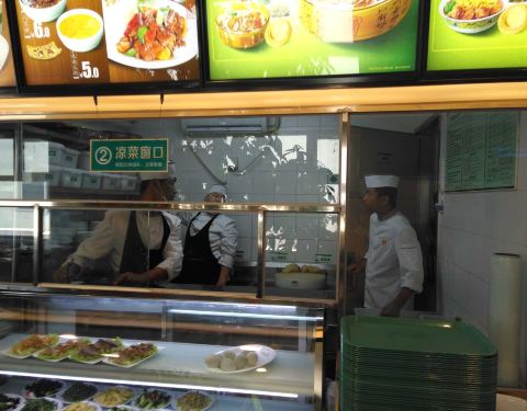 收银台点菜交费后,拿小票都窗口取餐。室内环境不错,挺干净的。服务态度一般般。牛肉面也是咸,味道还可以