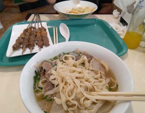 人很多,需要排队点餐,拿小票排队取餐……面条:味道还不错,个人感觉:加上点醋,口感更好。凉皮:不是麻酱的,吃着不辣,过后辣!咖喱牛肉:牛肉很少,咖喱味一般串:味道很不错!