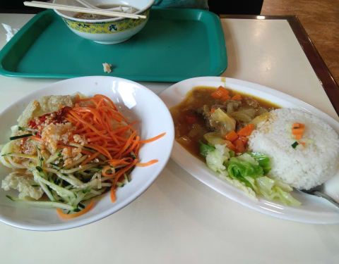 看着像加肉的吧,哈哈,其实是普通苏氏拉面。味道正宗,就是凉菜量太小。
